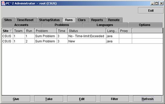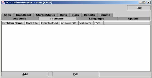 [31] In fact, it is critical in a loosely-coupled contest that all sites enter the contest problems (see the Problems tab on the Administrator main screen)  in the same order.  That is, “Problem #1” must be the same problem at all sites.