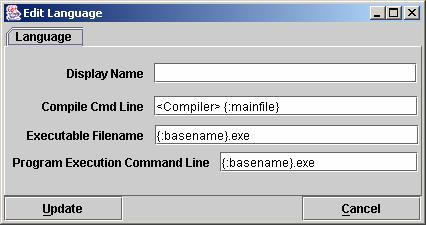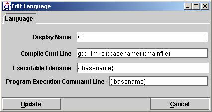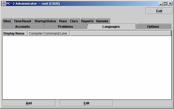 q             Languages (create one or more contest languages, specifying the language name, compile command line, executable filename, and program execution command line).