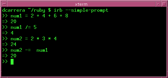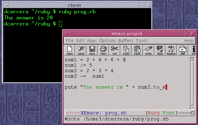 | Note: When you make a Ruby program, only the lines with puts will be printed to the screen. |
